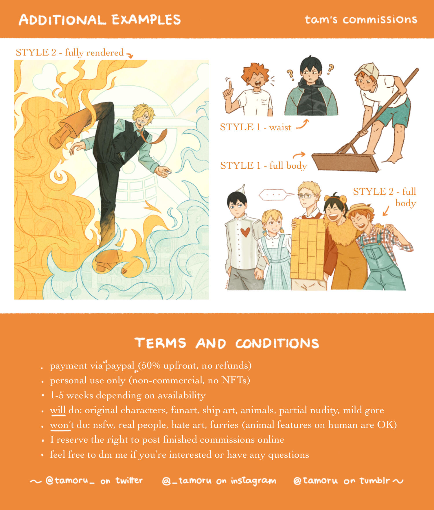 - Won’t do: nsfw, real people, hate art, furries (animal features on human are OK)